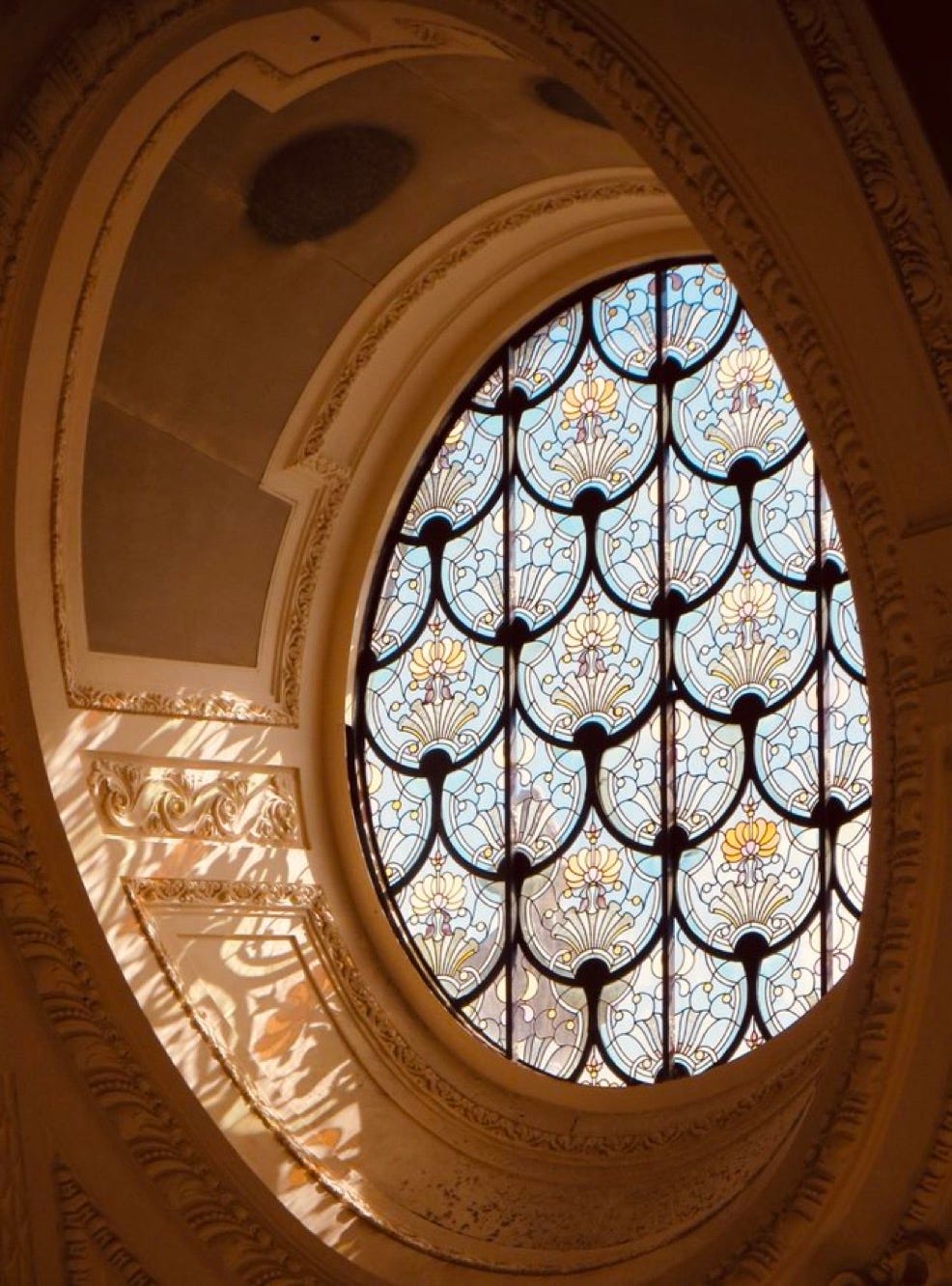Sunlight bursting through stained glass.