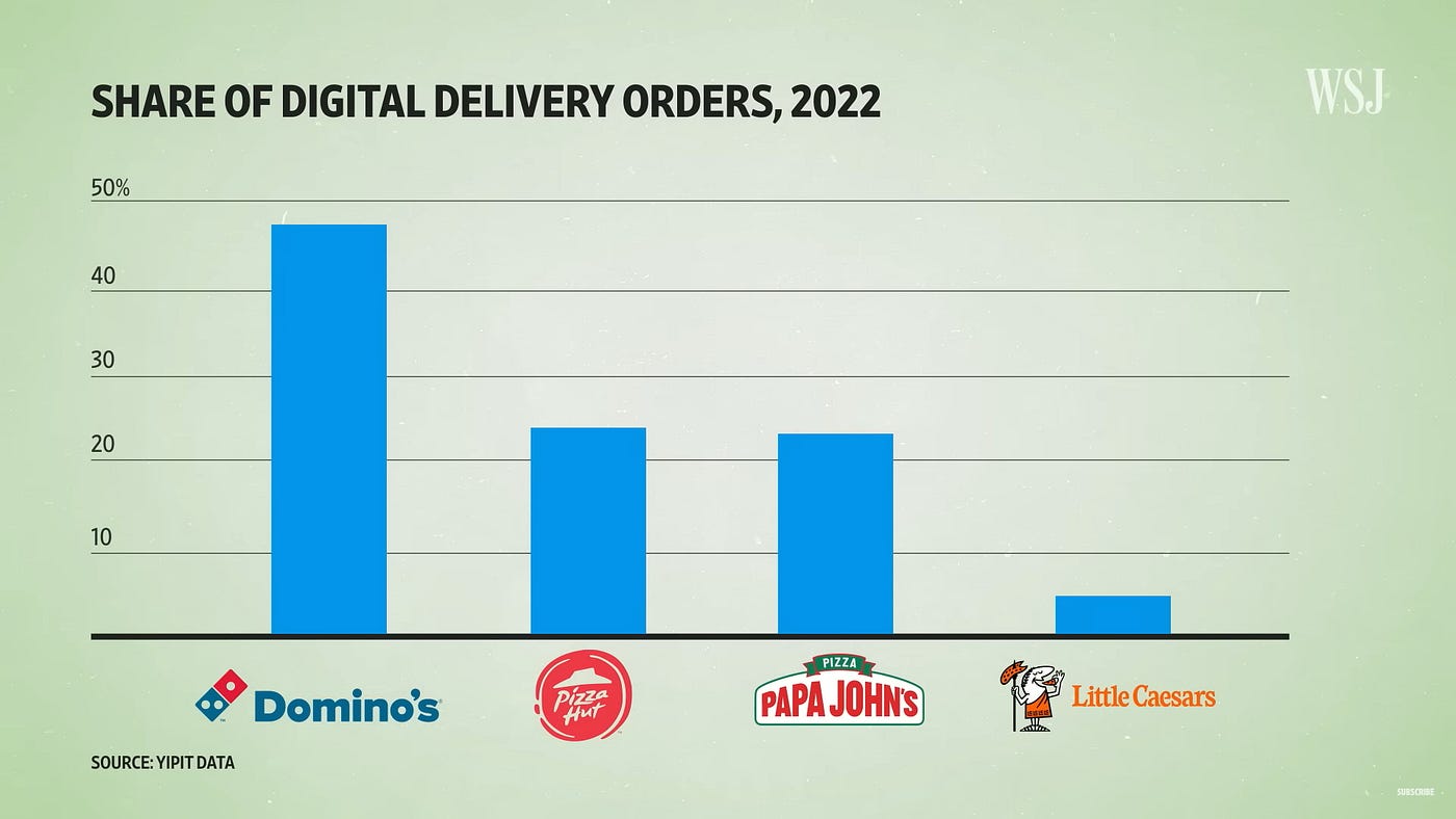 Receipts: Over 80% of global retail sales came through digital ordering in 2023; back in 2018, former CEO J. Patrick Doyle called his shot: “Fundamentally, we are on a path to take all orders digitally. Doing so will mean not only a better customer experience, which should generate continued sales and store-level profit growth, it allows our store-level teams to focus all their efforts on making great pizzas and giving great service to our customers.”