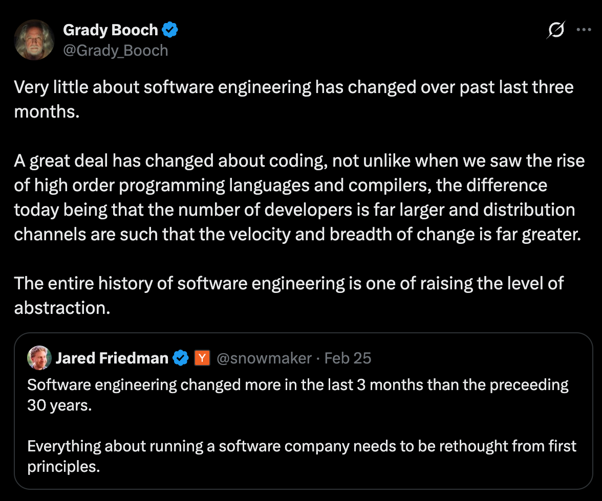 IBM Fellow and co-creator of UML Grady Booch recently posted this on X: