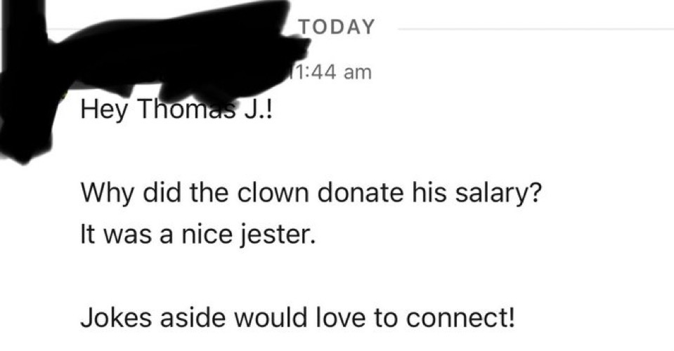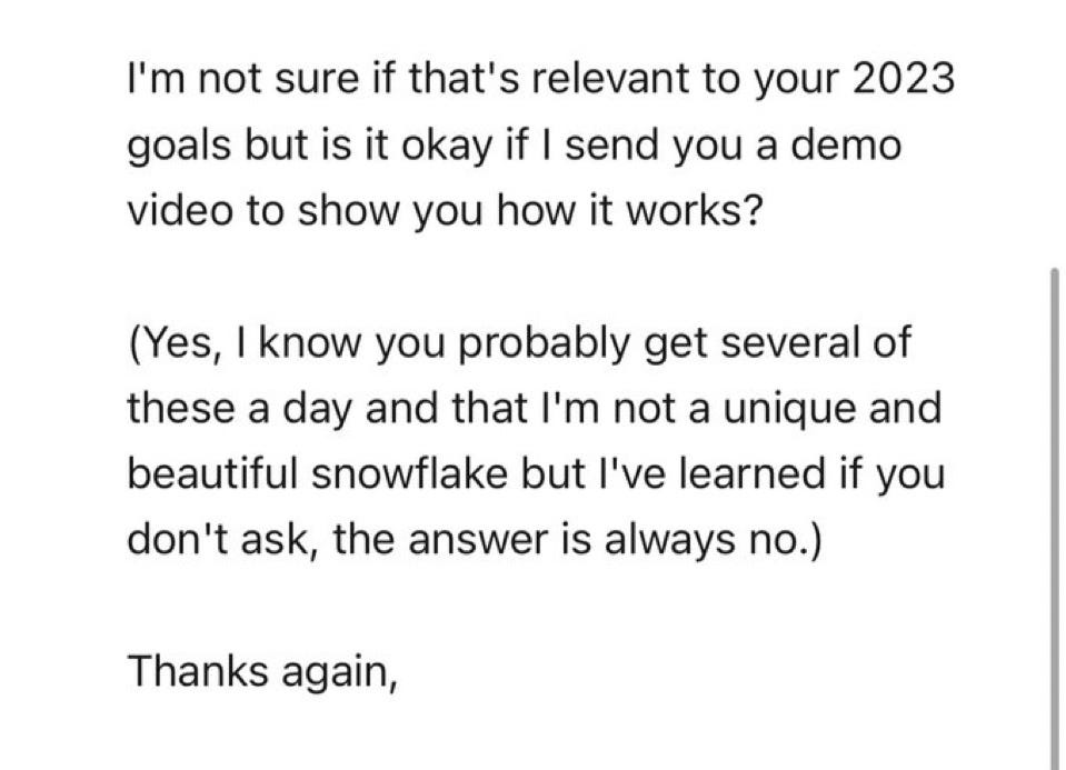 It says: you do the work. You decipher my half-thoughts. You wade through my sludge. It’s contempt disguised as content and connection. And it’s the inevitable byproduct of the Outreach Industrial Complex, whose chief export is pure, unadulterated spam.