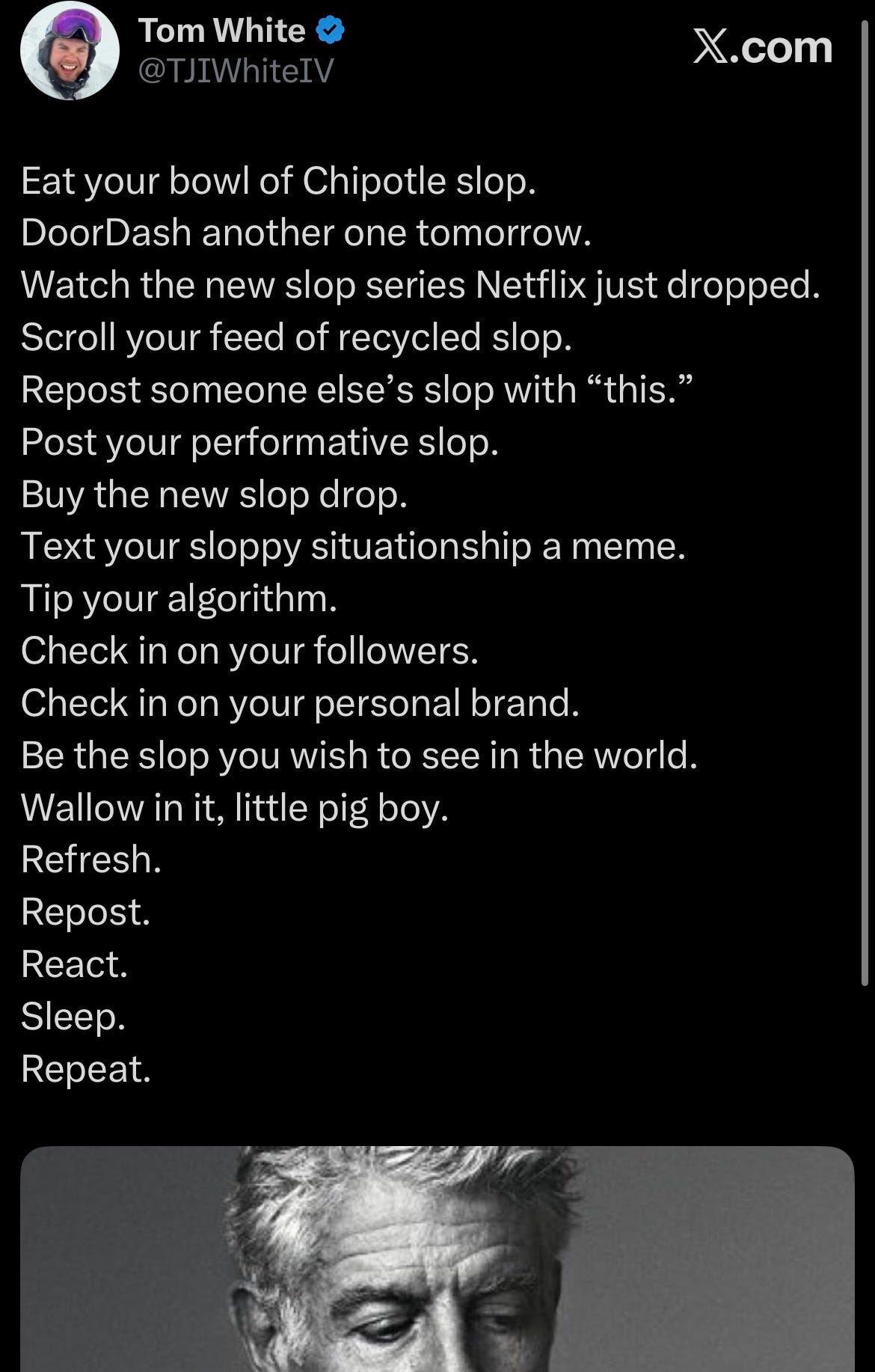 The problem with slop (especially in writing) is that the writer doesn’t care enough about the reader to make the reader’s life easier.