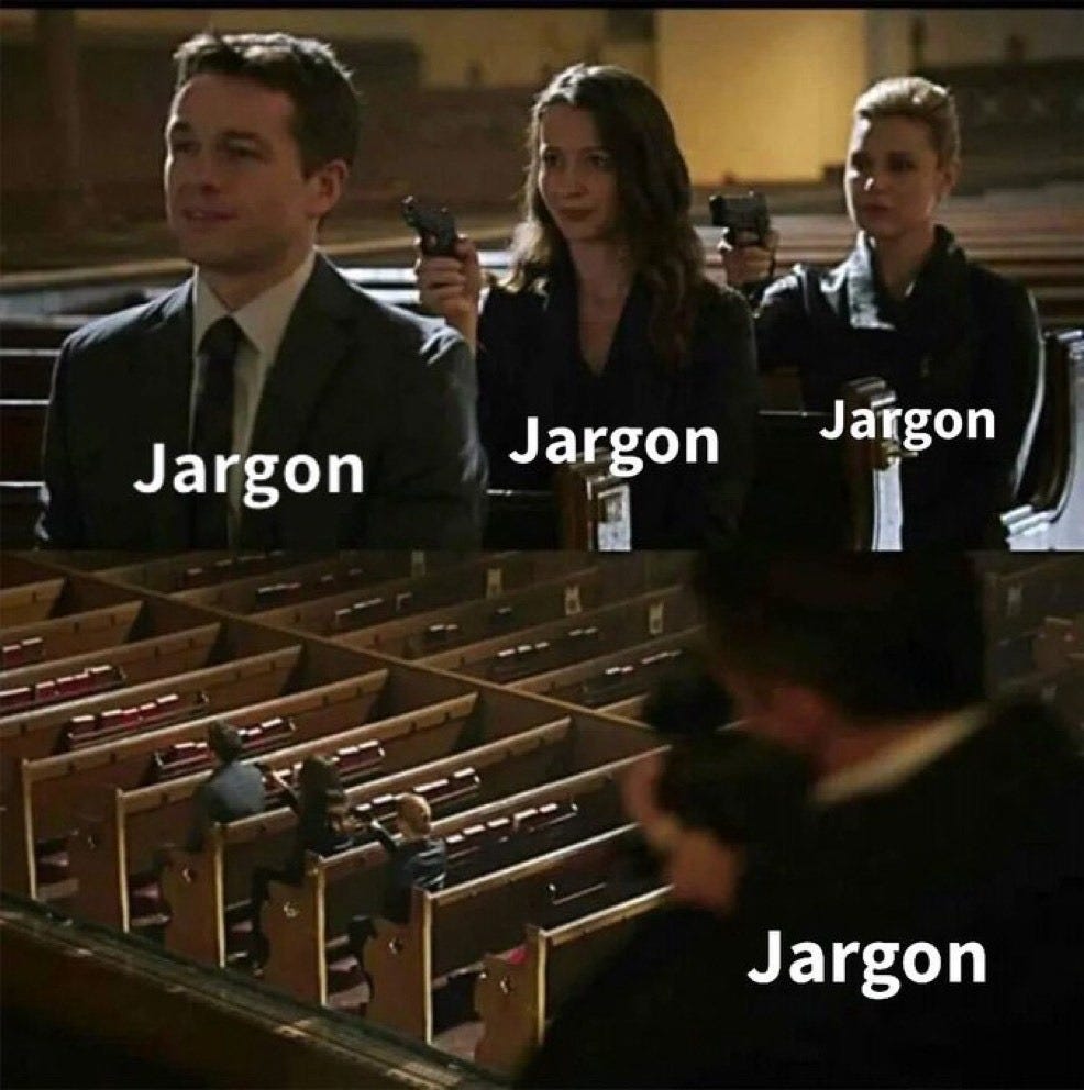 What follows is my best Noah Webster impression: a translation of some words and phrases from the wild west of white collar work for those blessed with blue collars, Roman collars, or no collars at all.
