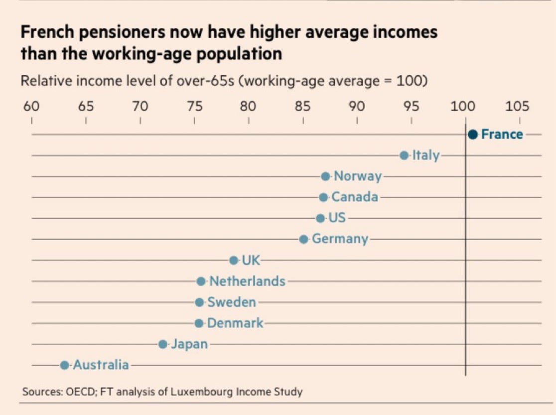 French pensioners now earn more than working young people.