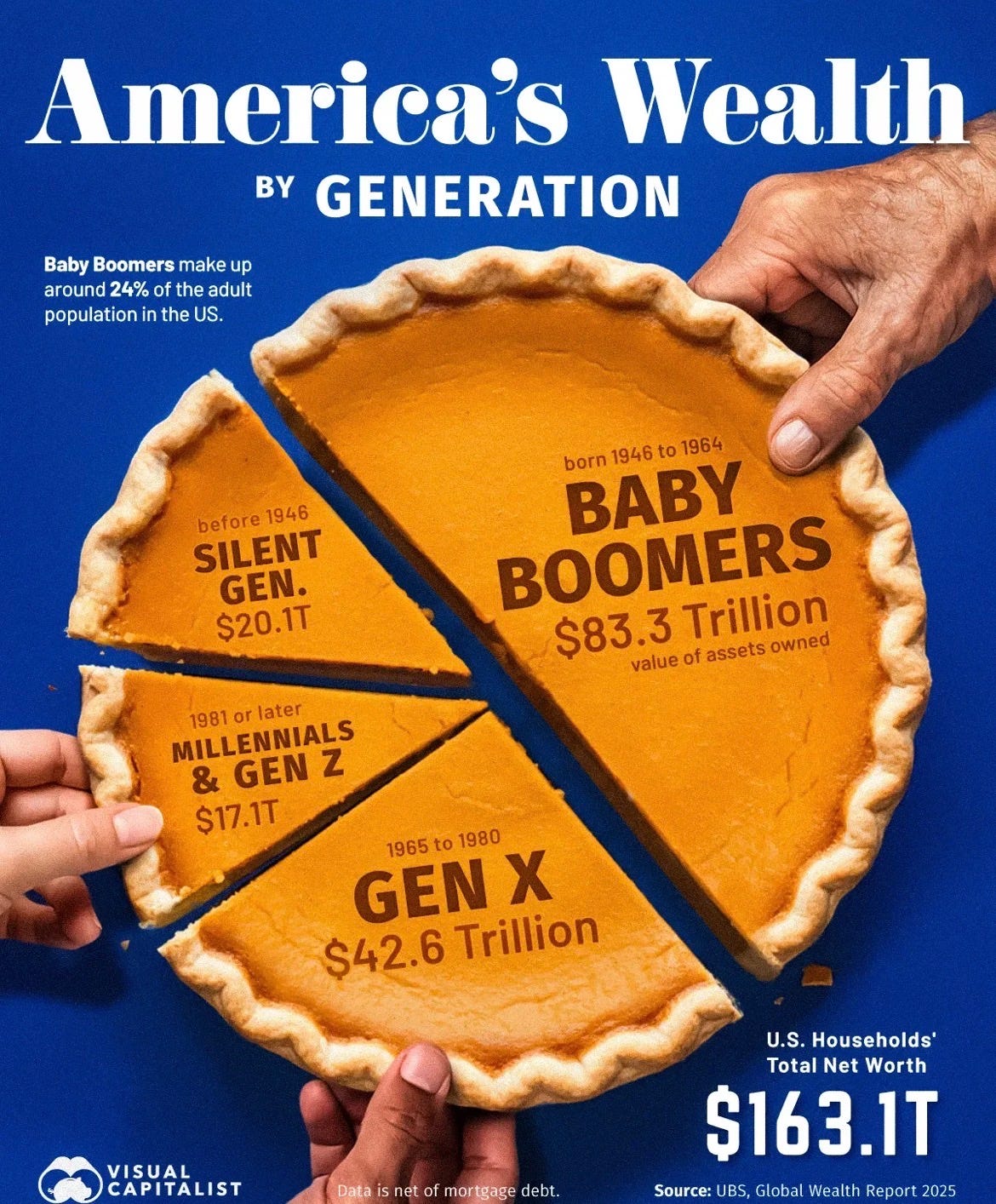 This generation is arguably the richest in history, averaging $1 million in wealth per person in America.
